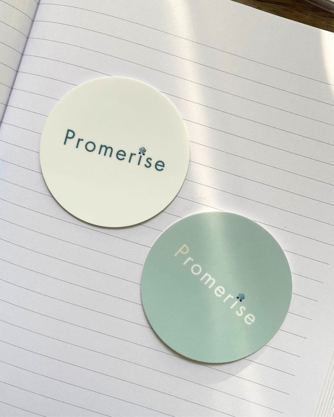 Promeriseの象徴であるBlue Roseをロゴのデザインに添えた、ブランドロゴステッカーです。